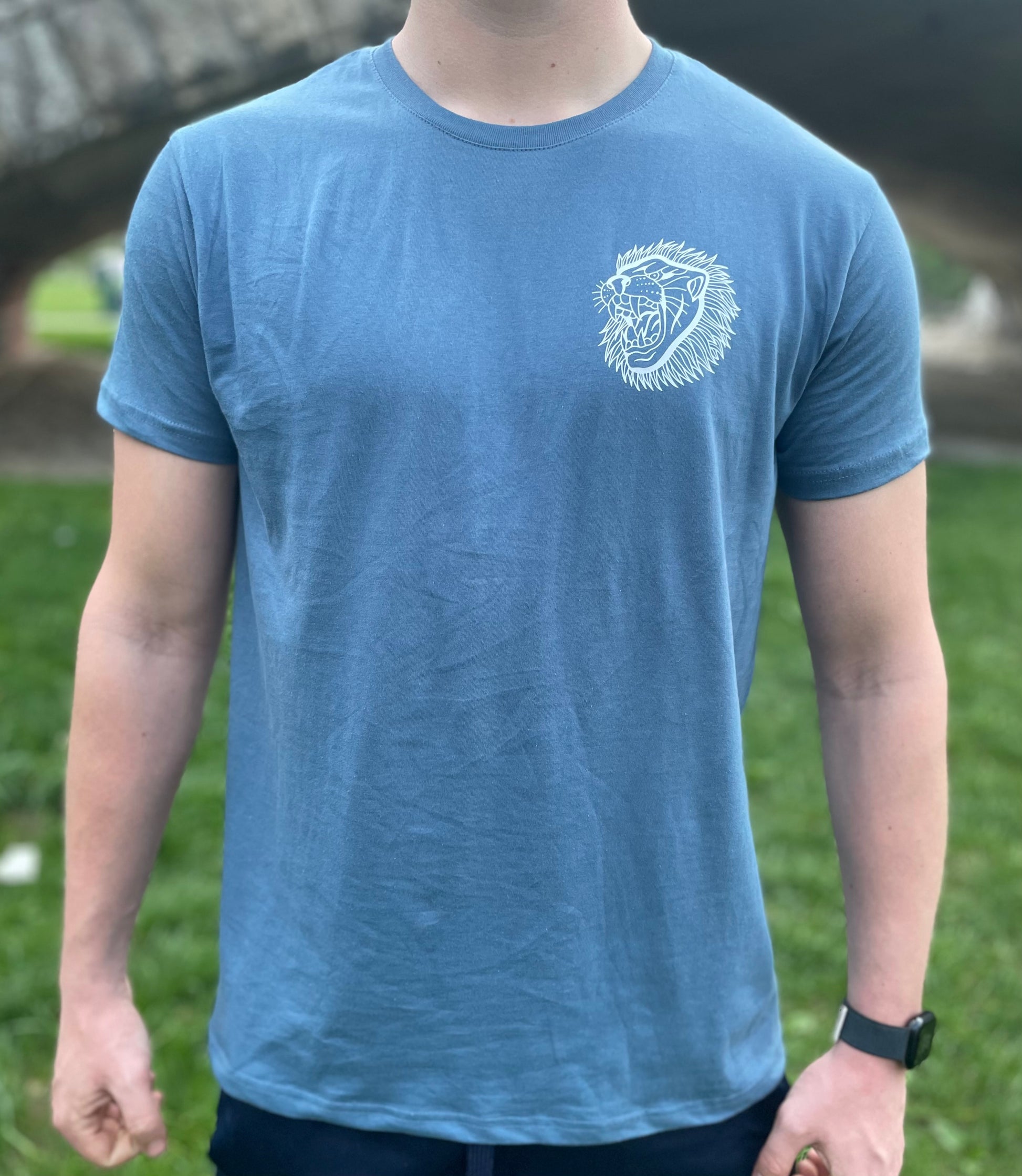 Unser T-Shirt "Löwe Brüllend" ist ein echter Blickfang, sowohl durch seinen markanten Farbton als auch durch die beiden Logoaufdrucke. Hergestellt aus 100% Baumwolle bietet es nicht nur ein angenehmes Tragegefühl, sondern auch eine optimale Passform. Das T-Shirt ist in der trendigen Farbe "Stone Blue" erhältlich und überzeugt mit einem Logo-Print auf der linken Brustseite sowie einem weiteren Druck am rechten Ärmel, der unser Echte Münchner Löwen-Logo trägt. Durch das leichtgewichtige Material und den hochwertigen Single Jersey Stoff ist dieses Shirt perfekt für den Alltag geeignet. Holen Sie sich jetzt Ihr T-Shirt "Löwe Brüllend" und zeigen Sie Ihre Verbundenheit zu unserem Löwen-Logo.